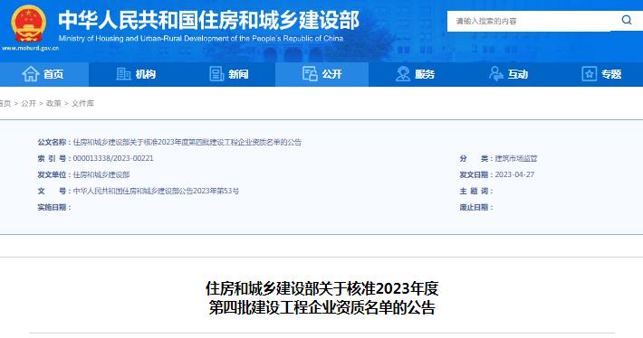 近日,住建部公布了《关于核准2023年度第四批建设工程企业资质名单的公告》,其中本批次共有161家企业,共核准资质177项。