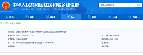 关于核准2023年度第十三批建设工程企业资质名单的公告