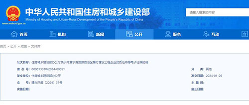 近日,住房和城乡建设部发布回函,同意宁夏关于拟推行建设工程企业资质证书等3类电子证书的请示,具体回函如下:
