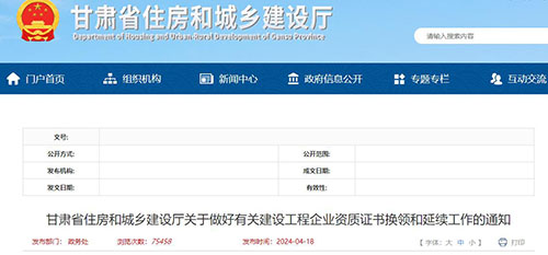 近日,甘肃省住建厅发布关于做好有关建设工程企业资质证书换领和延续工作的通知。