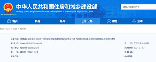 近日,住建部印发《建设工程质量检测机构资质电子证照标准和电子证照归集共享业务规程的通知》。